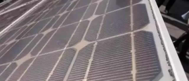 從近處看,電池片已經(jīng)泛黃,但是并不妨礙它源源不斷地向電網(wǎng)供電。