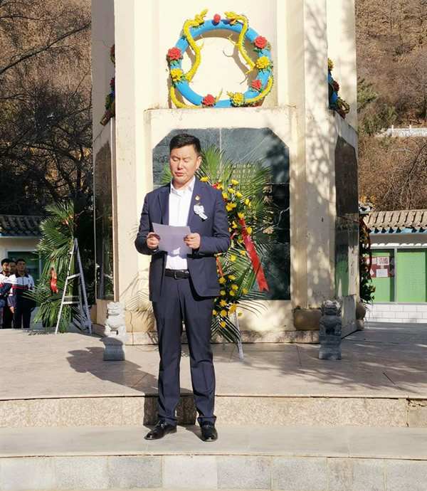 華能生態科技股份黨支部書記、董事長李強在烈士紀念碑前進行講話